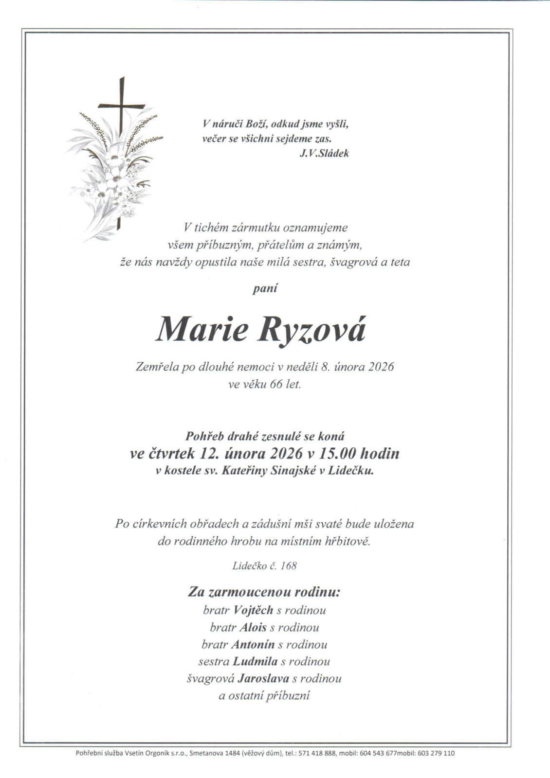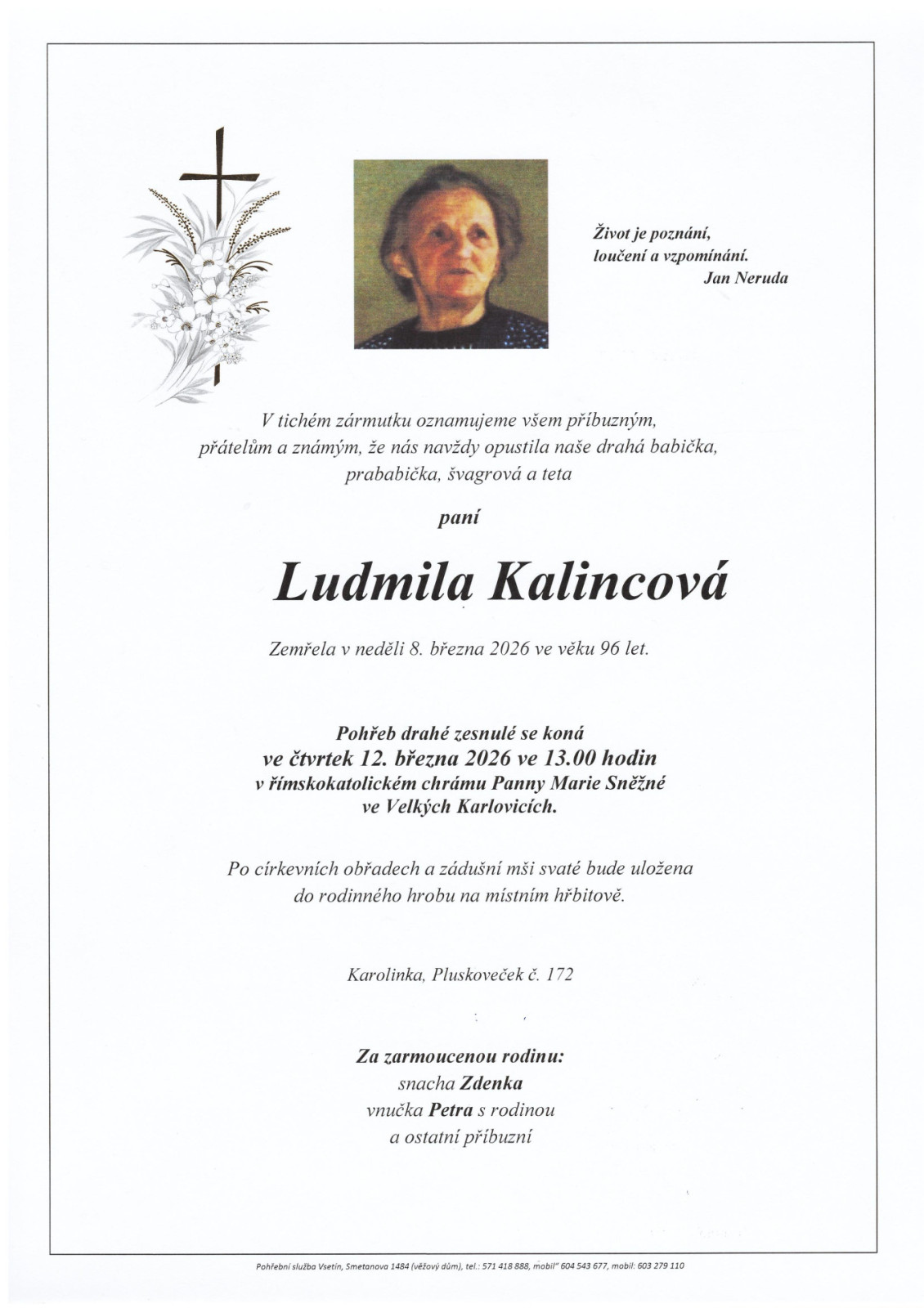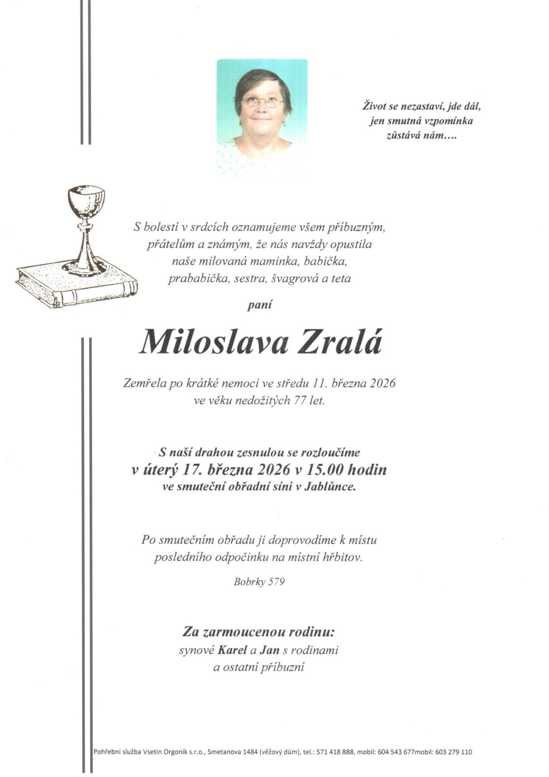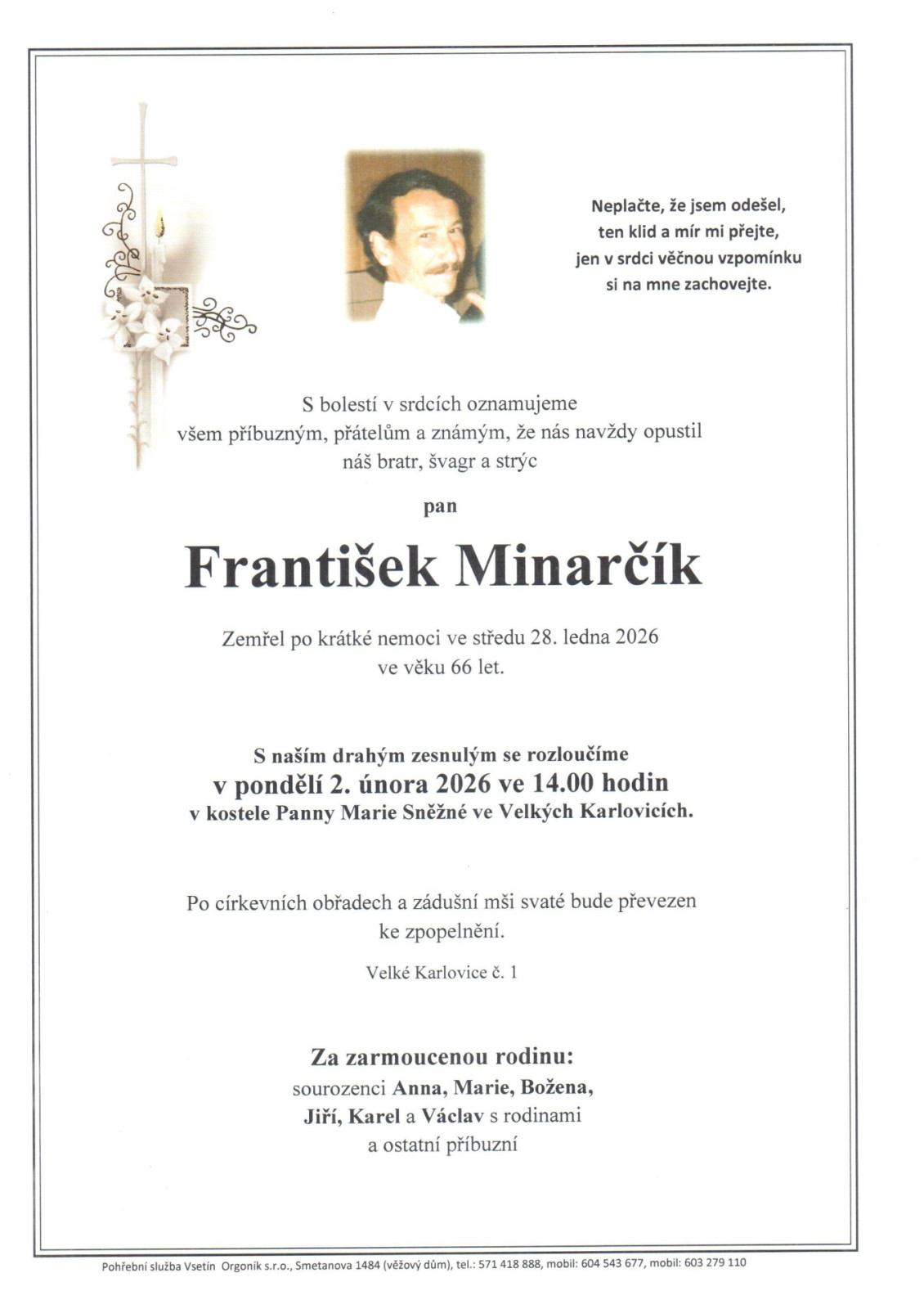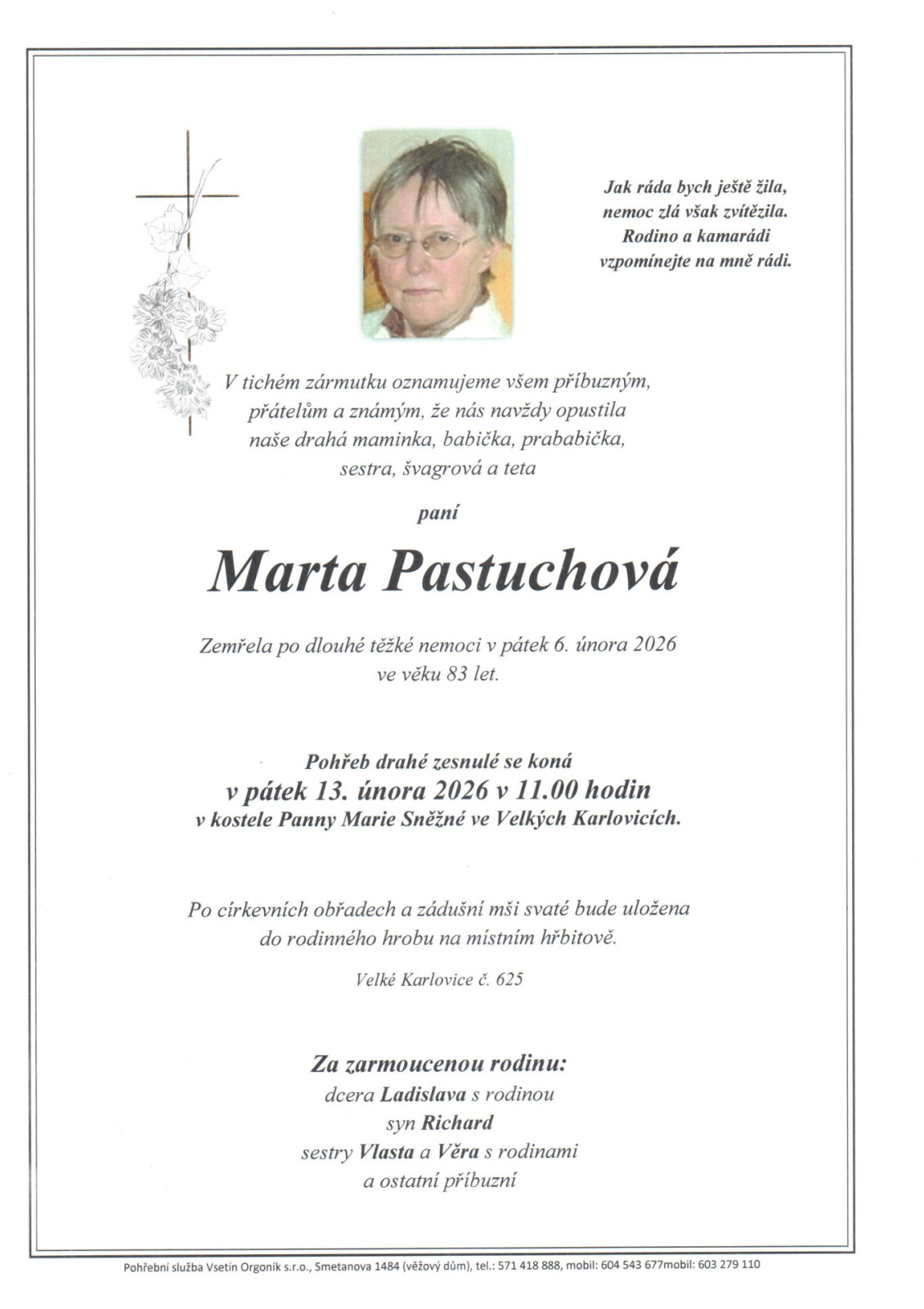 Na tomto místě je k dispozici přehled nejbližších smutečních obřadů, které zajišťuje naše pohřební služba.