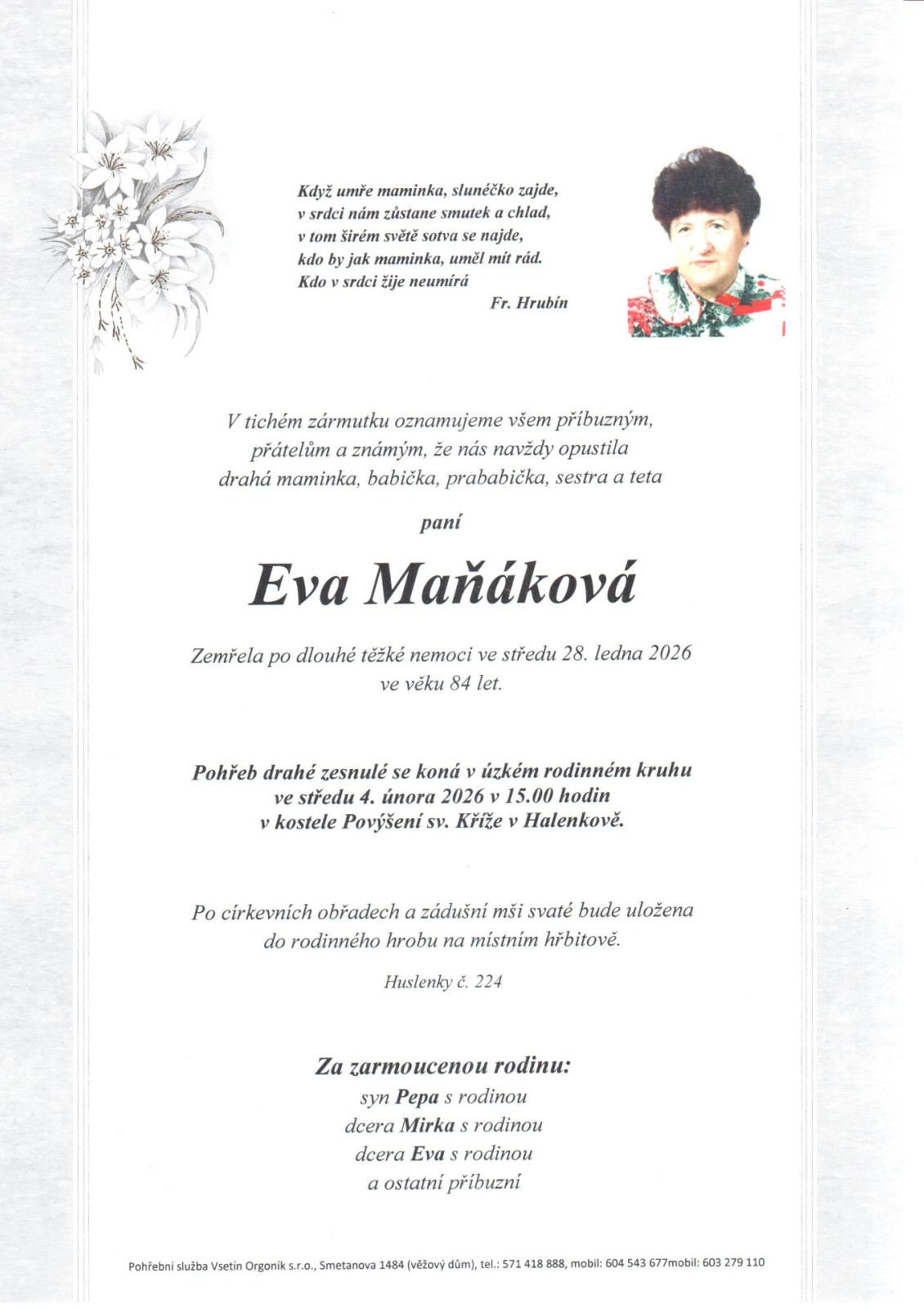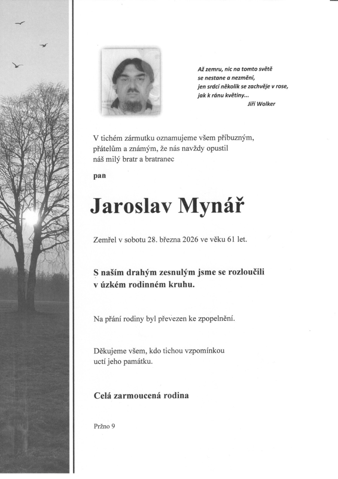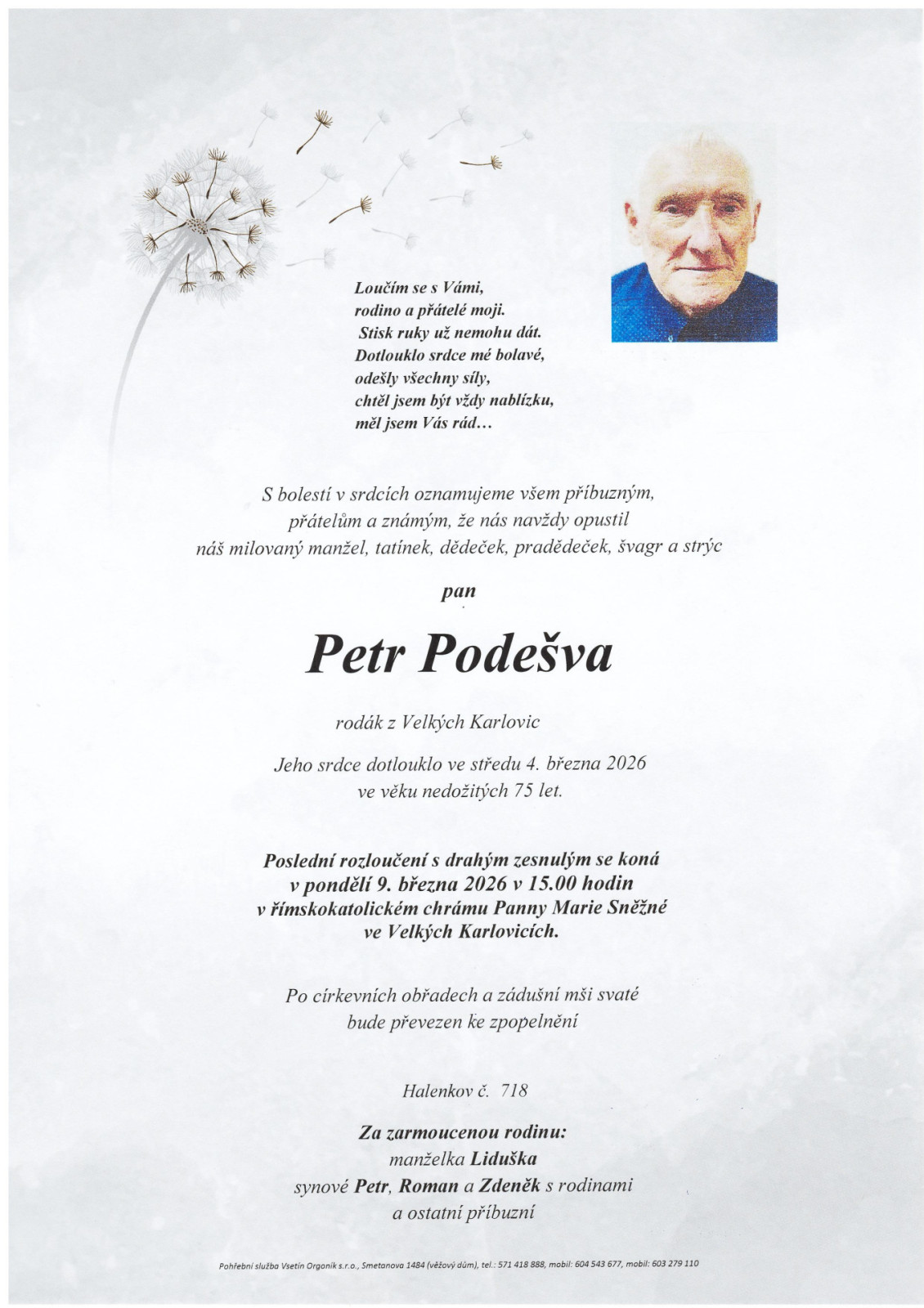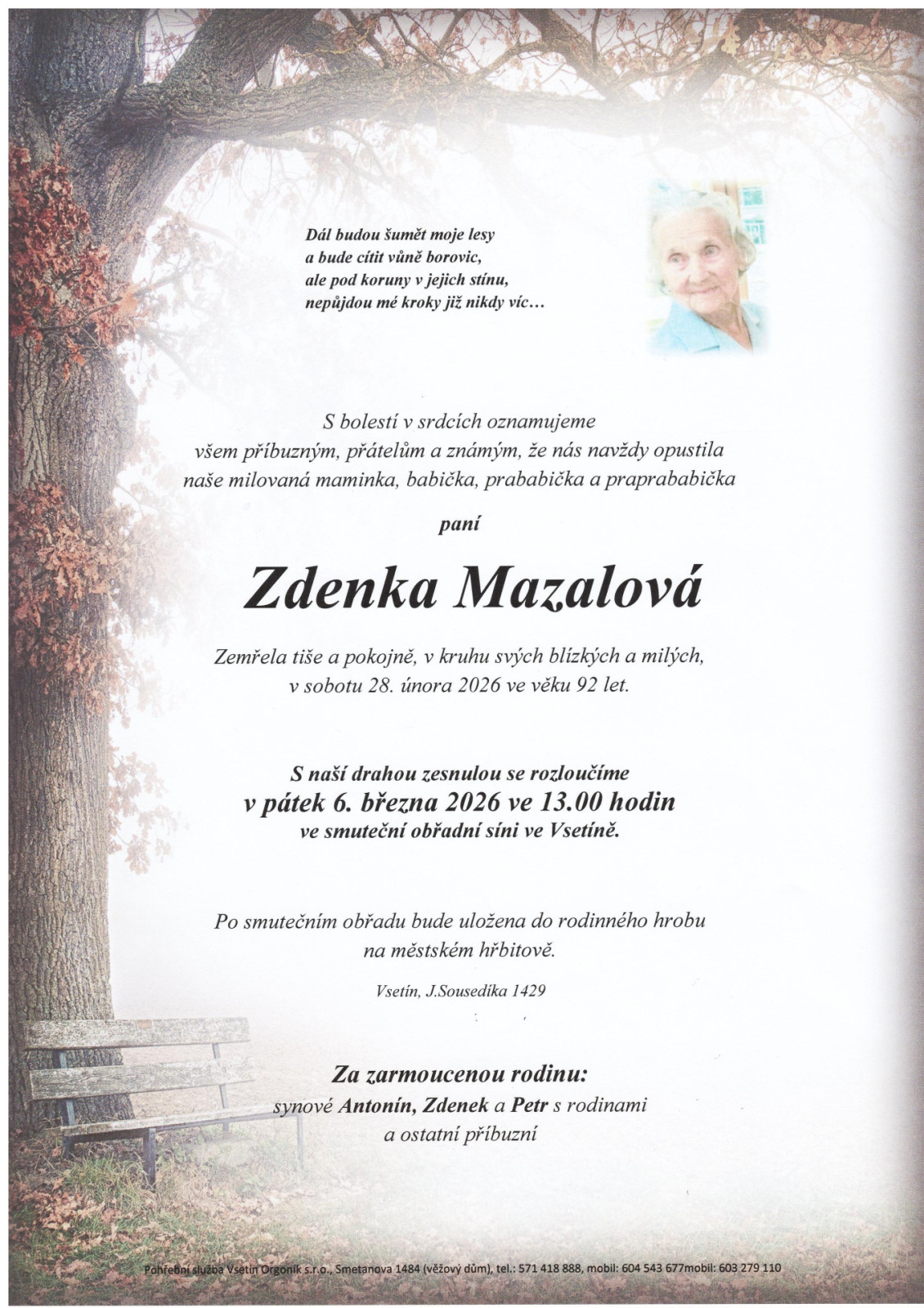 Na tomto místě je k dispozici přehled nejbližších smutečních obřadů, které zajišťuje naše pohřební služba.