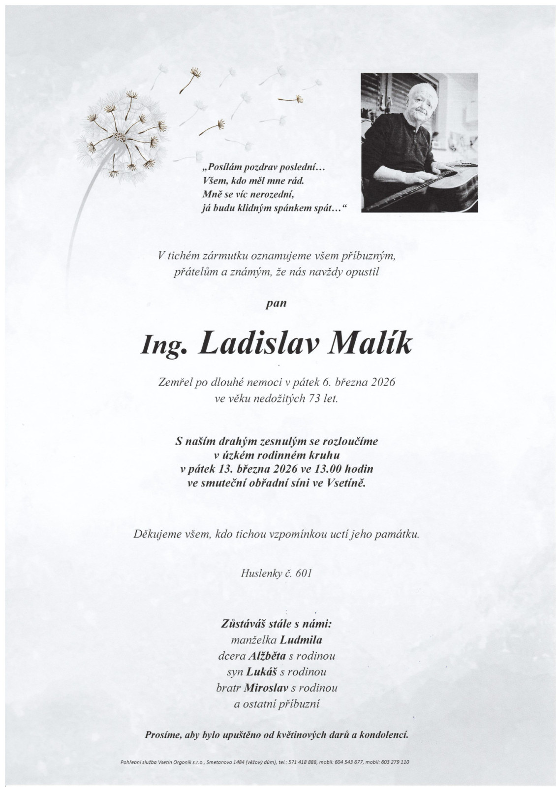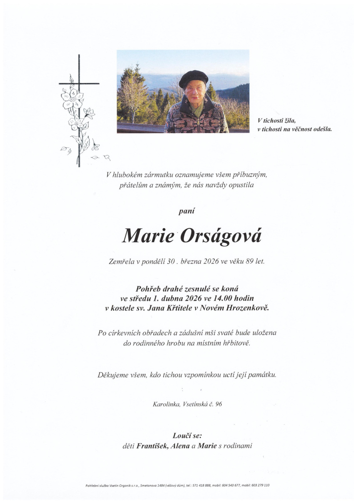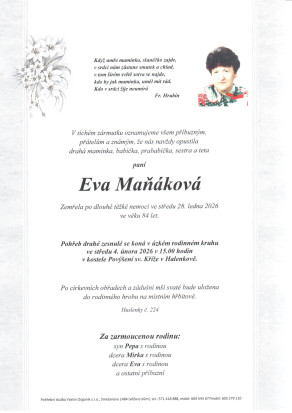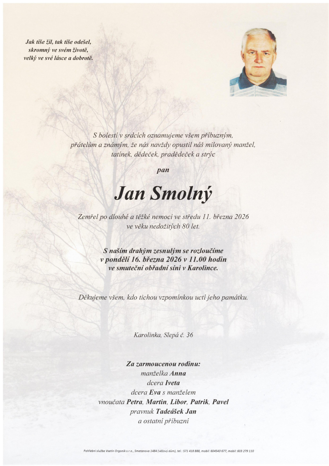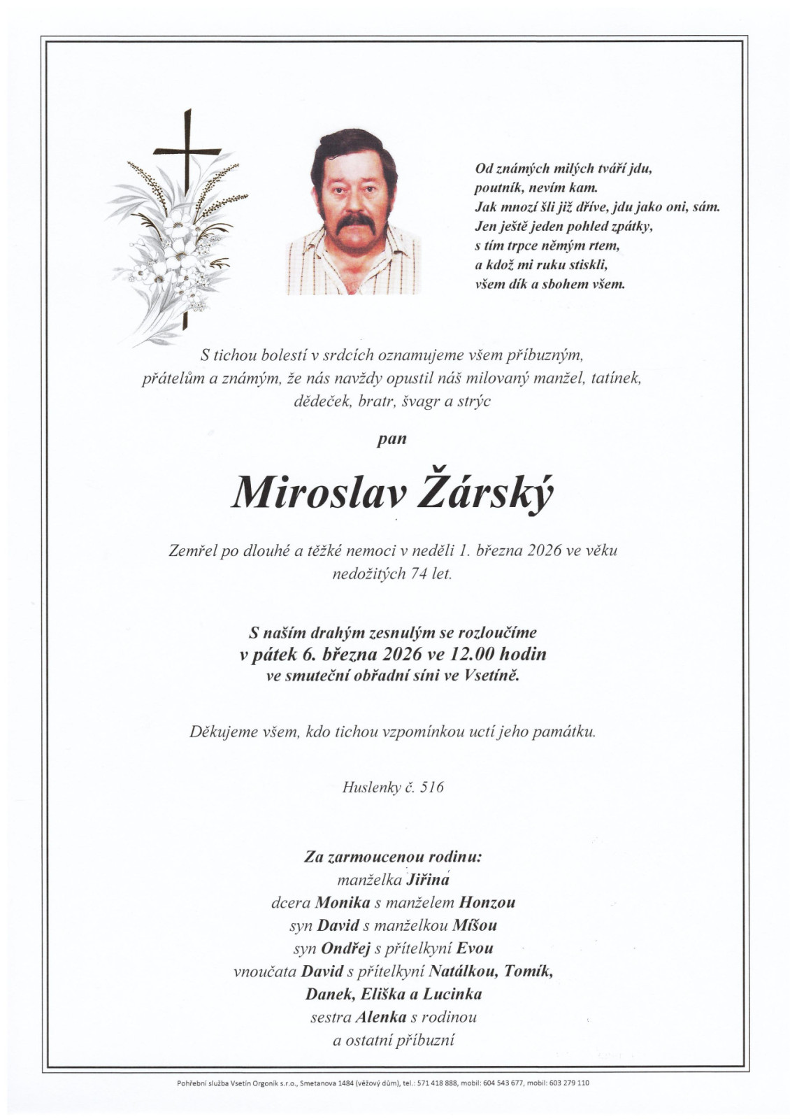 Na tomto místě je k dispozici přehled nejbližších smutečních obřadů, které zajišťuje naše pohřební služba.