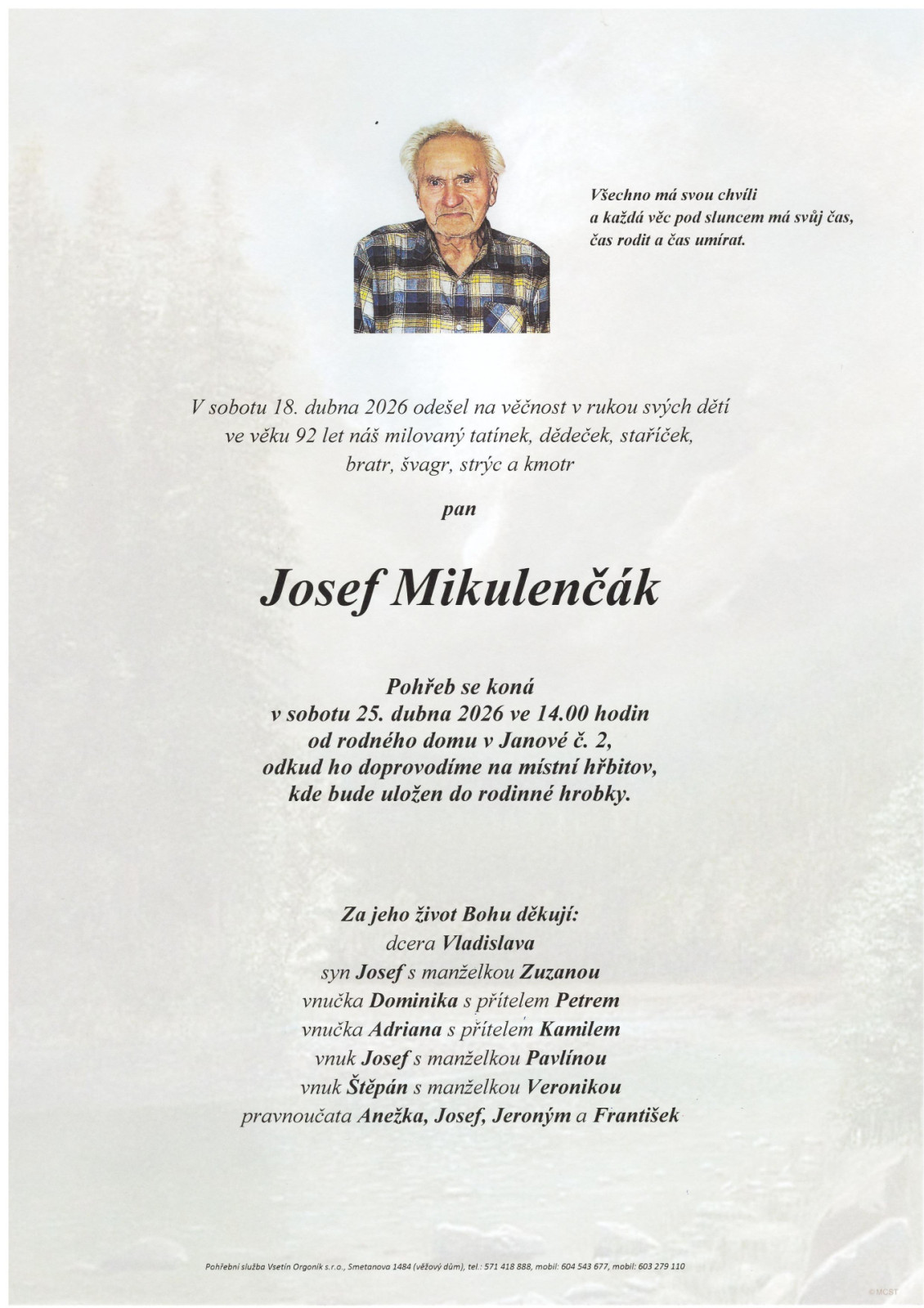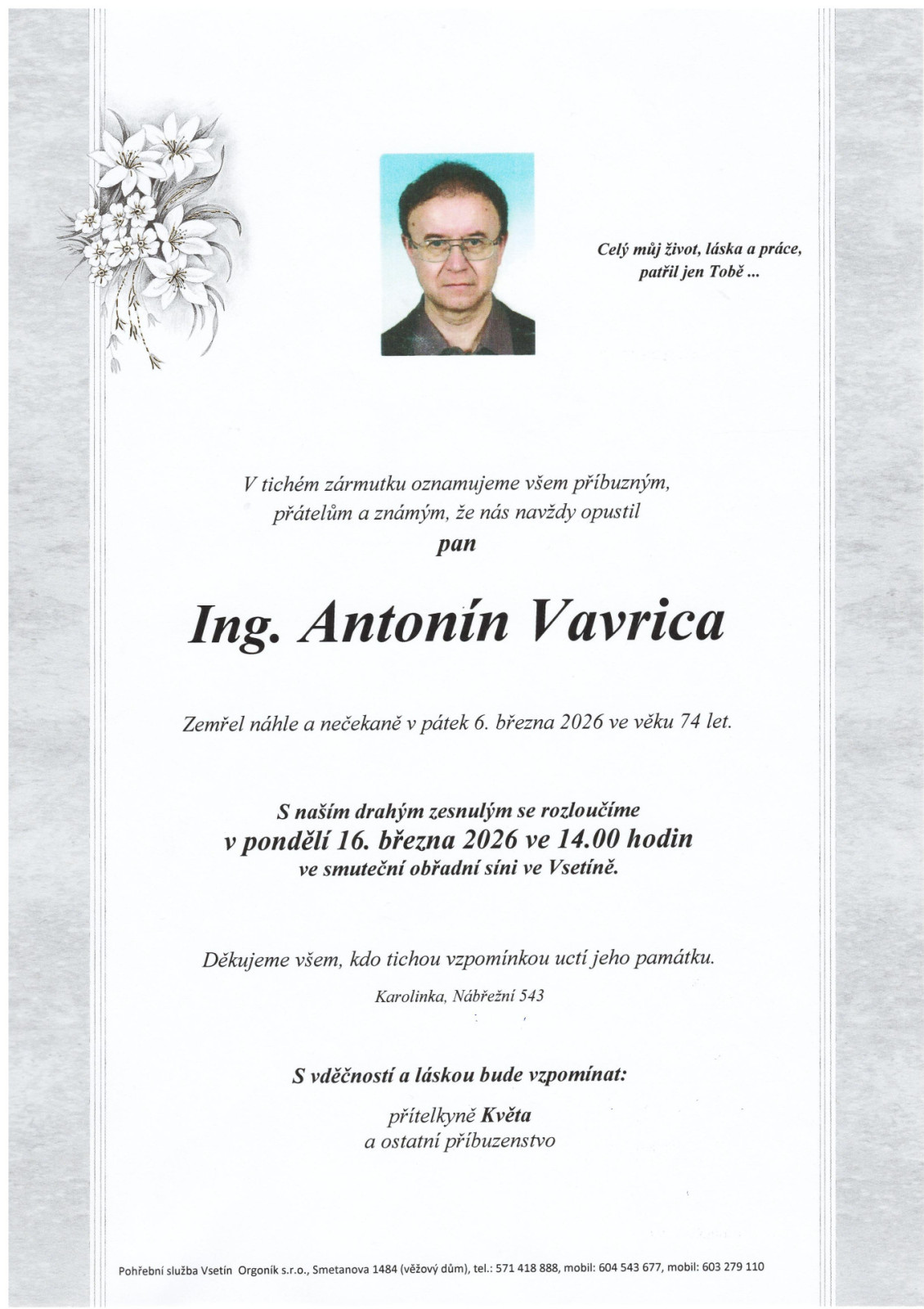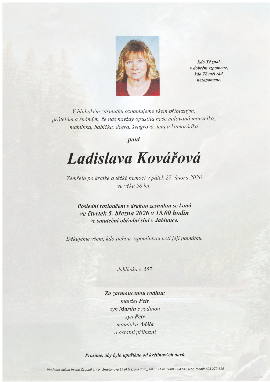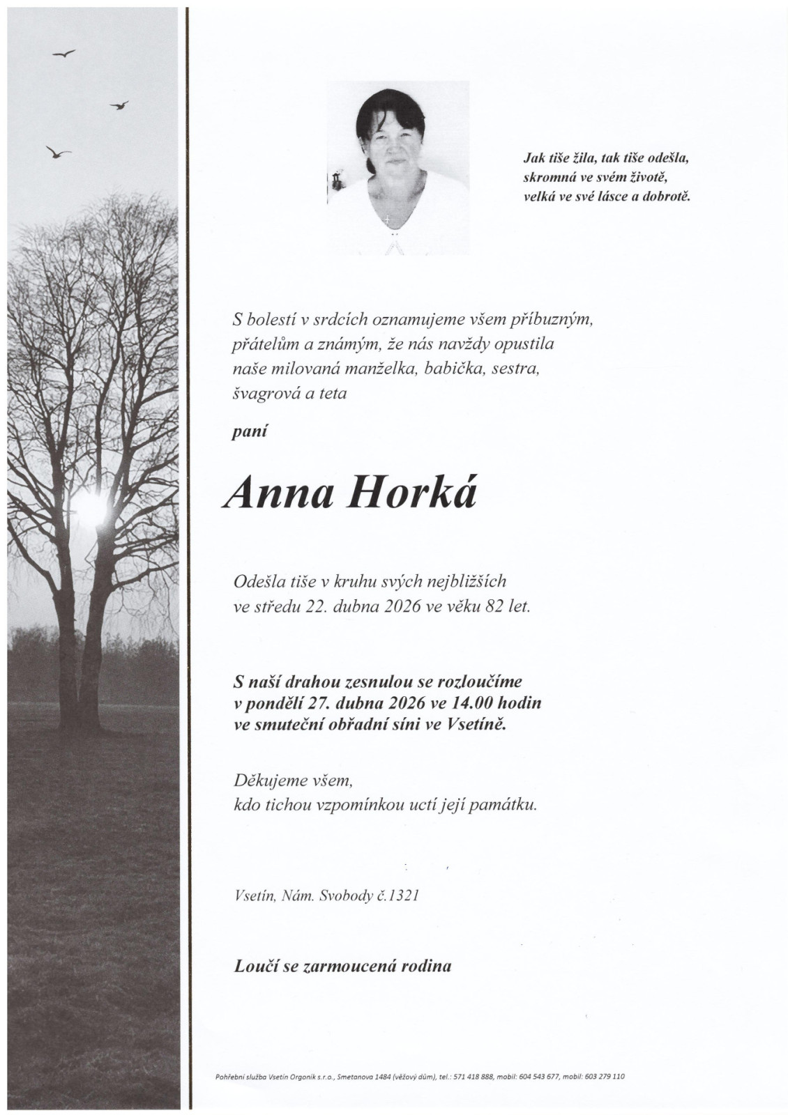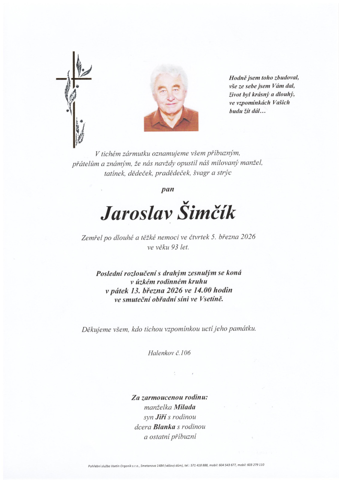 Na tomto místě je k dispozici přehled nejbližších smutečních obřadů, které zajišťuje naše pohřební služba.