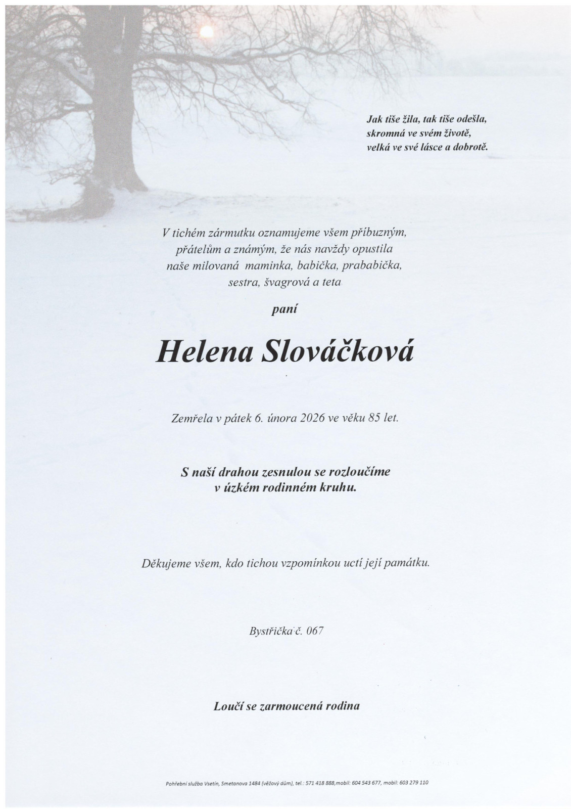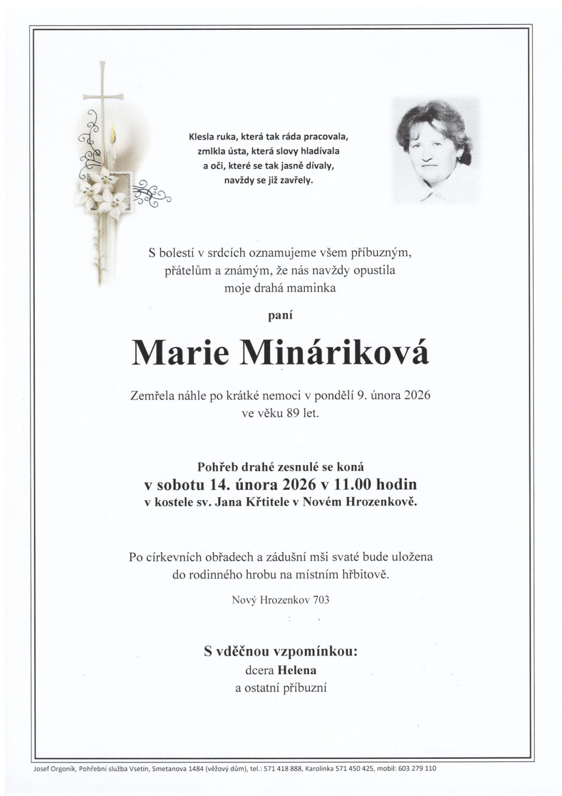 Kontaktní informaceJiž 30 let jsme zde pro vás a pomáháme vám v těžkých chvílích, když odejde někdo z vašich blízkých.