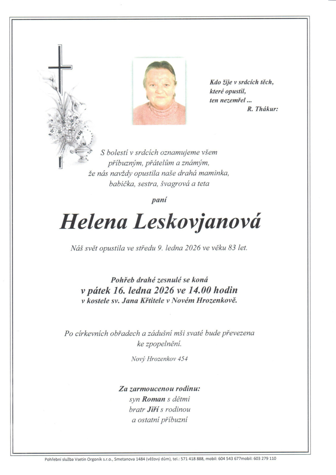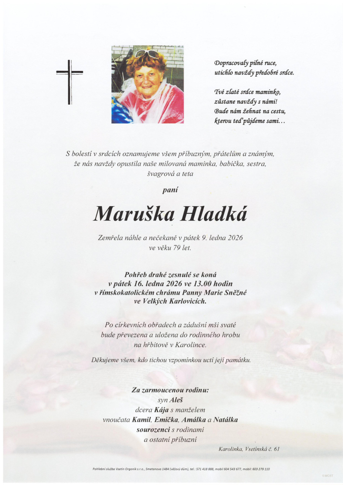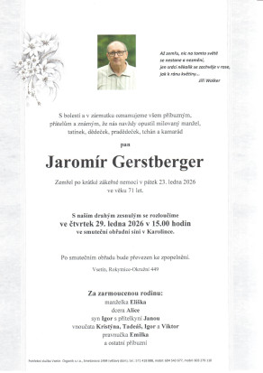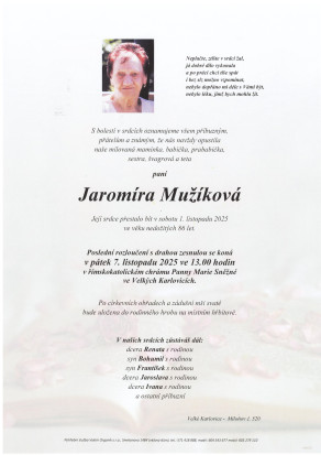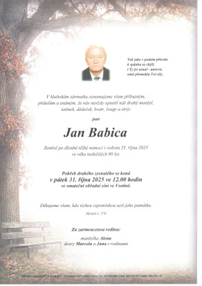 Na tomto místě je k dispozici přehled nejbližších smutečních obřadů, které zajišťuje naše pohřební služba.